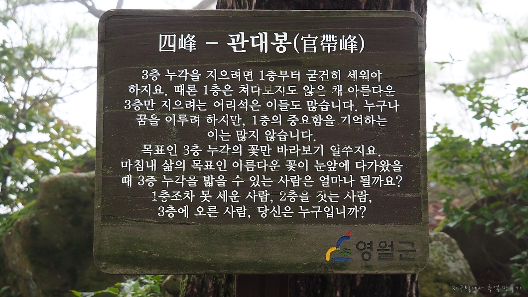 구봉대산 산행을 하면서 만나는 봉우리들에 적혀있는 우리 인생사 가르침을 옮겨 놓았습니다.