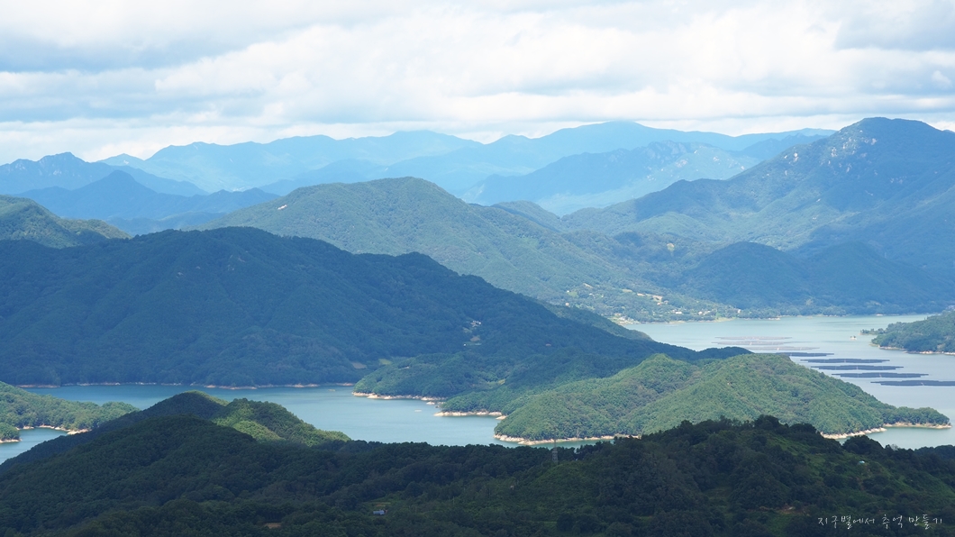 대병 3산 중에서 합천호 풍경이 가장 돋보이는 금성산에 올랐답니다.