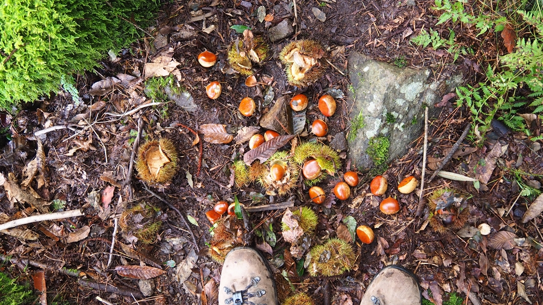 산에서 자생하는 밤나무에서도 밤이 많이 떨어져 있네요.