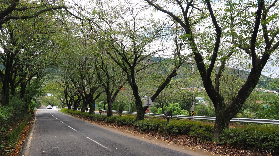주차장에서 율정마을까지는 도로를 따라 걸어야 합니다.