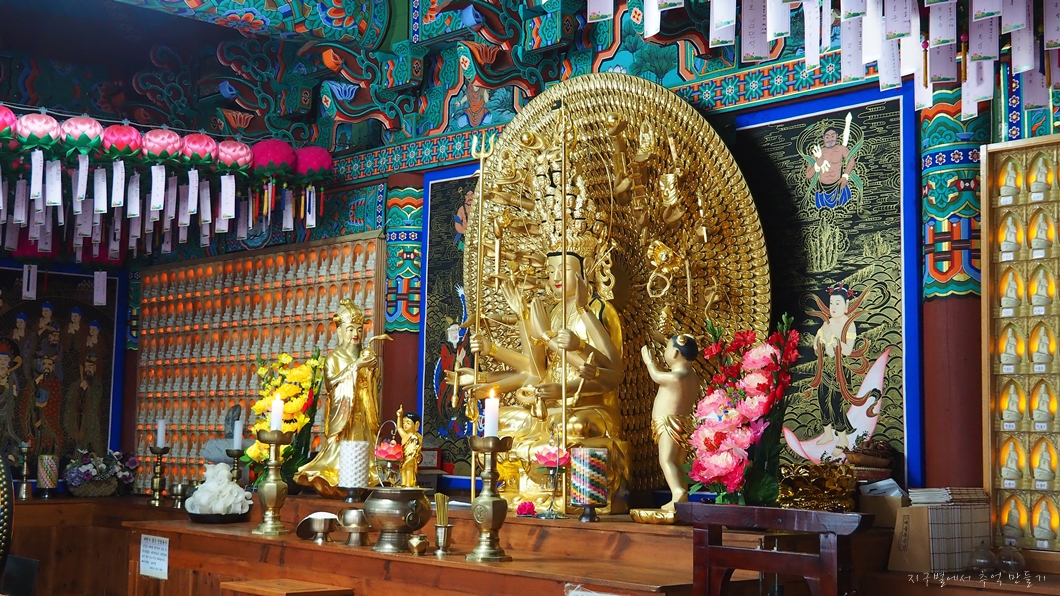대웅전에는 특이하게 주불로 관음보살을 모셔두었네요.