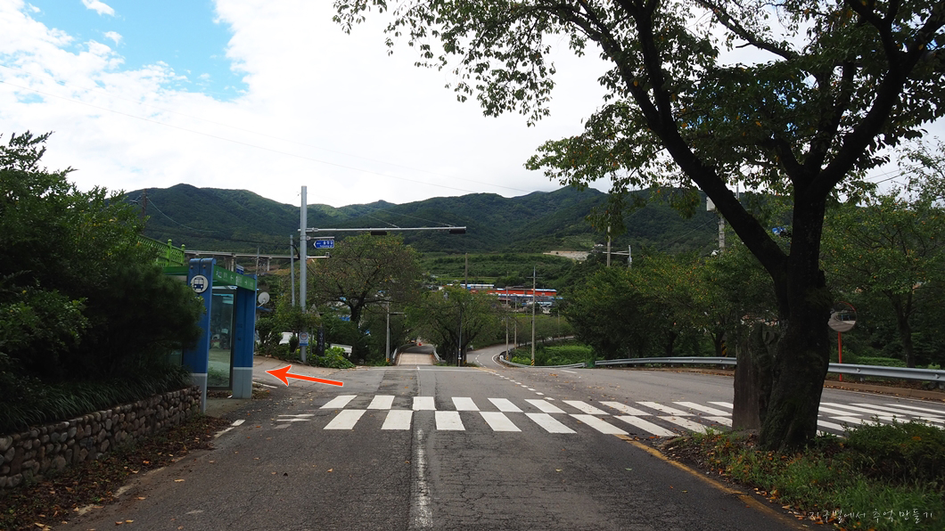 이곳에서 화살표 방향으로 마을길로 올라갑니다.