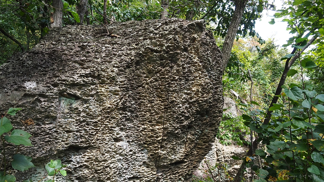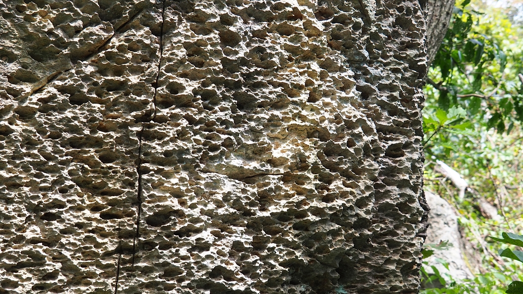 풍화로 약간 부위들이 떨어져 나가 생긴 모습인데 여느 산에서는 구경하기 힘든 바위 형태입니다.