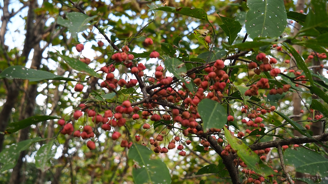 이 빨간색 열매는 정상 아래쪽으로 자생지가 되었는지 수십 그루가 빨갛게 열매를 맺고 있네요.