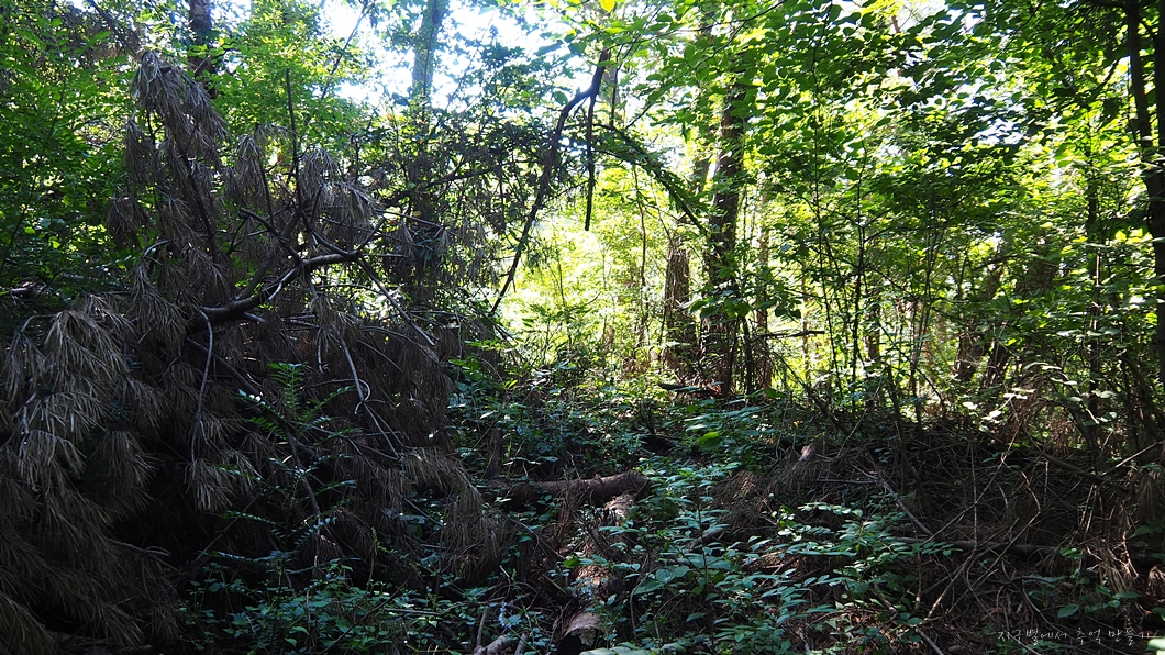 등산로가 수풀과 넝쿨에 묻혀있고 지난 태풍으로 나무들이 많이 쓰러져 있어 진행하기가 무척이나 어려웠답니다.