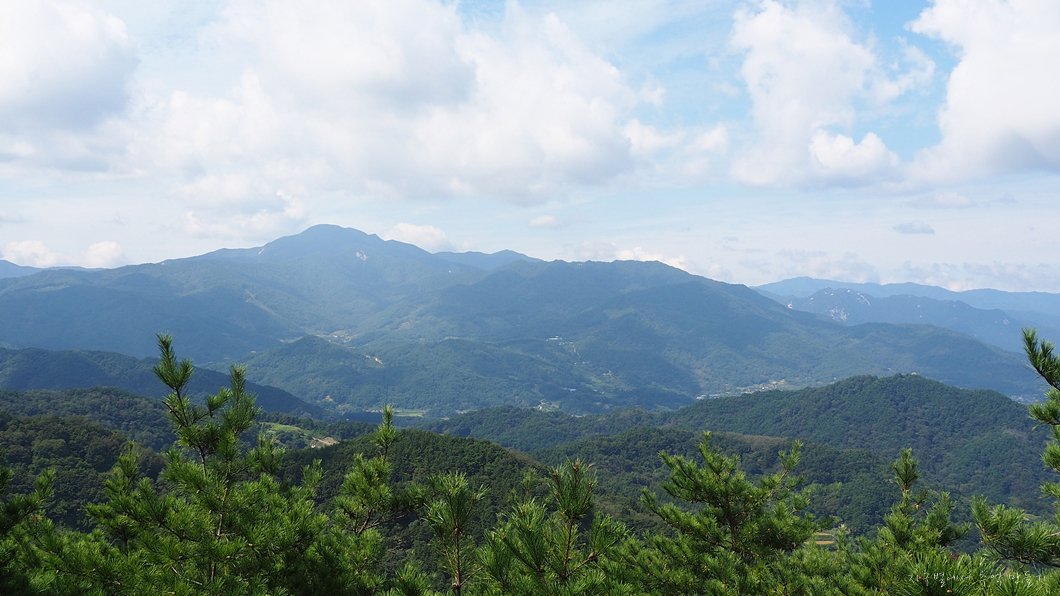 앞쪽으로 보이는 산들을 당겨 봅니다.