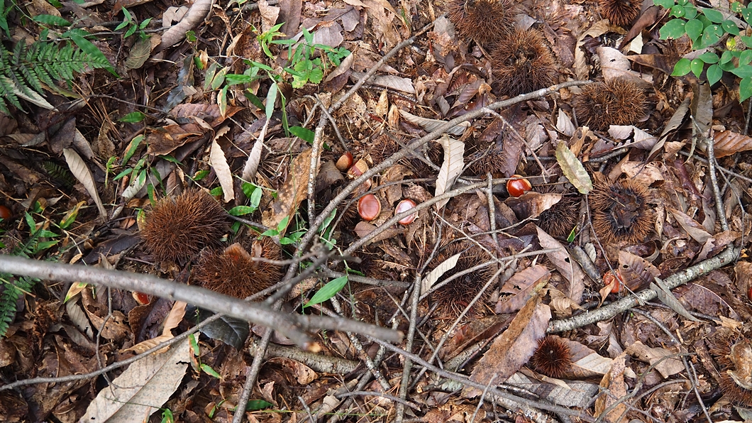 하산 지점 100m 정도를 놔두고 내리막길에 밤이 엄청나게 떨어져 있습니다.