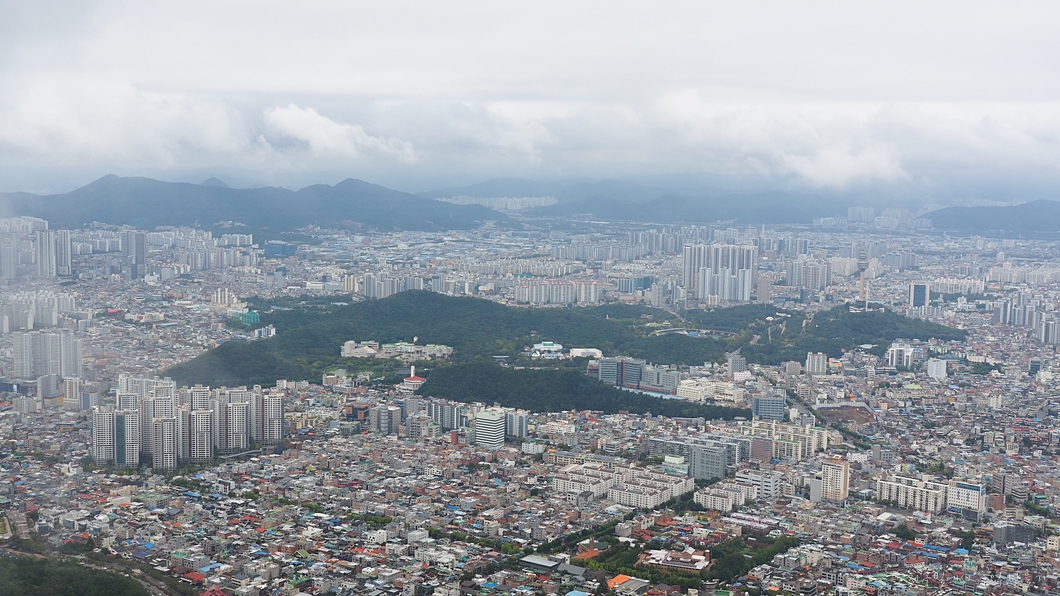 대구 시가지는 아무것도 보이지 않다가 일순간 조망이 열립니다.