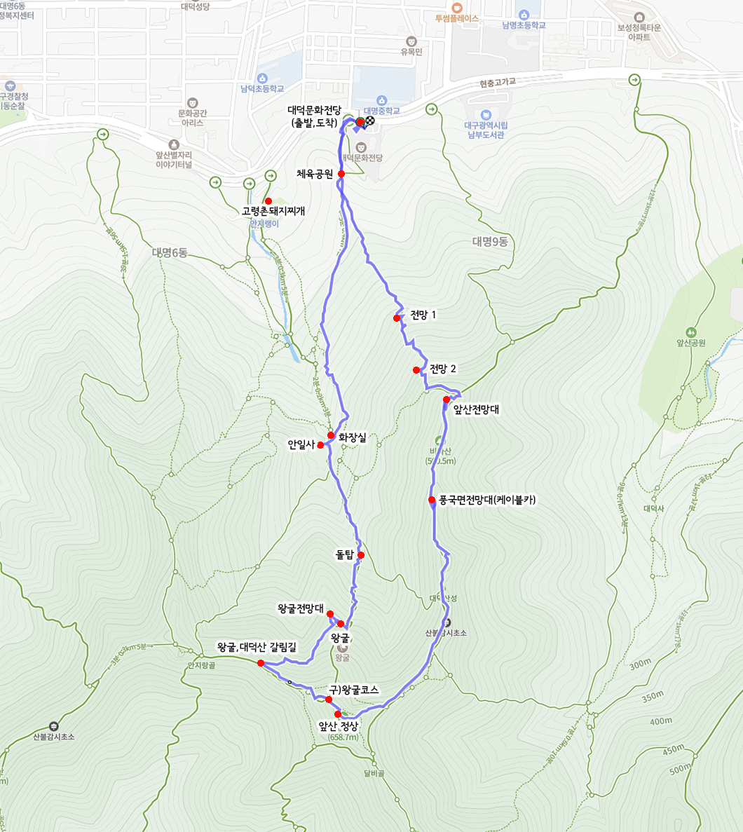 산행 코스 : 대덕문화전당 - 앞산전망대 - 정상 - 왕굴 - 대덕문화전당(원점회귀)
