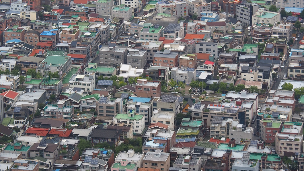 오름길에는 두 번의 조망이 트이는데 첫 번 조망처에서 내려다본 풍경은 이런 모습.