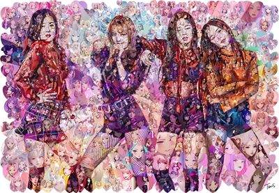 아주 다양한 작품들을 선보이고 있는데 근간에 이 양반이 우리나라 소속 세계 최강의 다국적 아이돌 걸그룹 블랙핑크를 모델로 작품을 만들었네요.