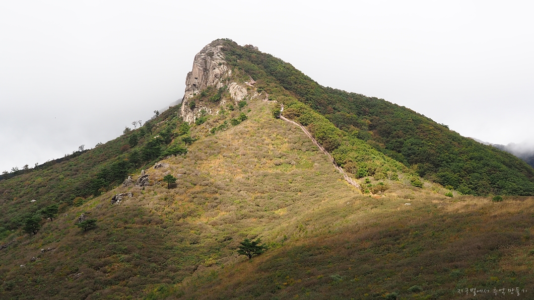 상단에 보이는 봉우리 중 좌측은 은하수봉, 우측이 정상.
