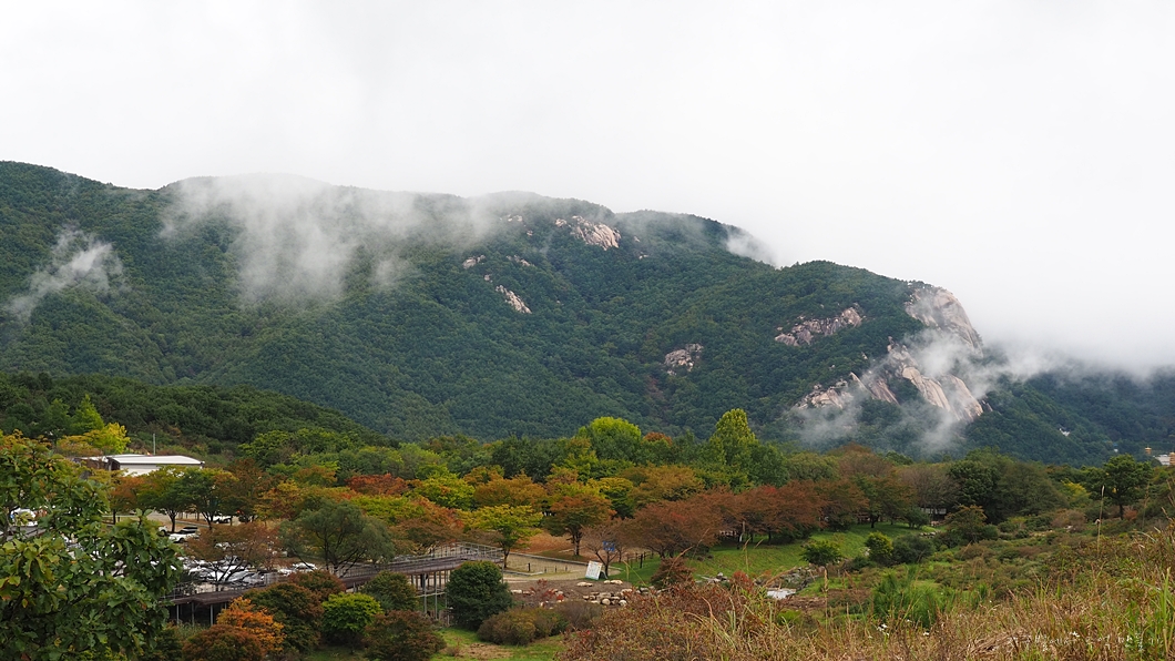 산정에는 안개가 가득 껴 있는데 조금씩 걷히는 분위기네요.