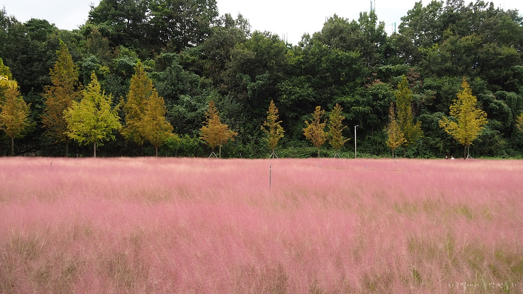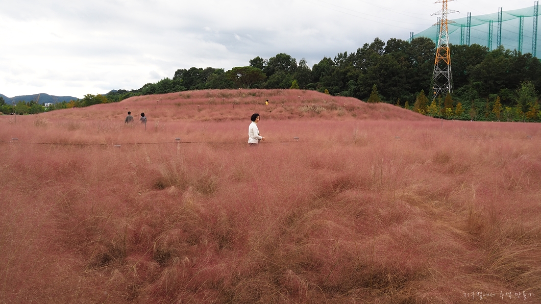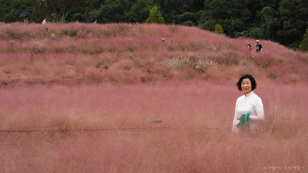 핑크뮬리가 동산 형태로 심겨져 있어 어느 곳을 배경으로 하여도 멋집니다.