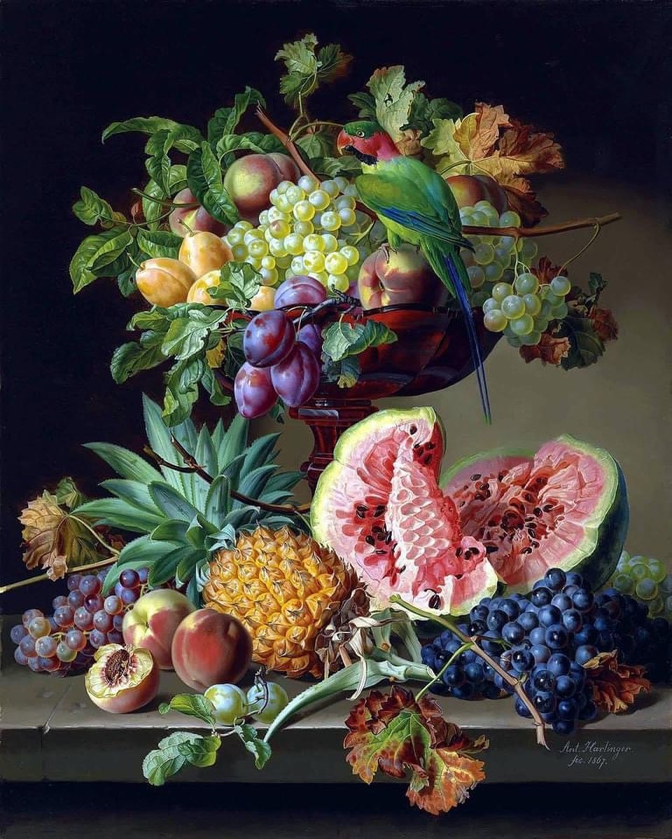 1806년생, 오스트리아의 대표적인 정물화가 안톤 하르팅거(Anton Hartinger)의 작품입니다.
