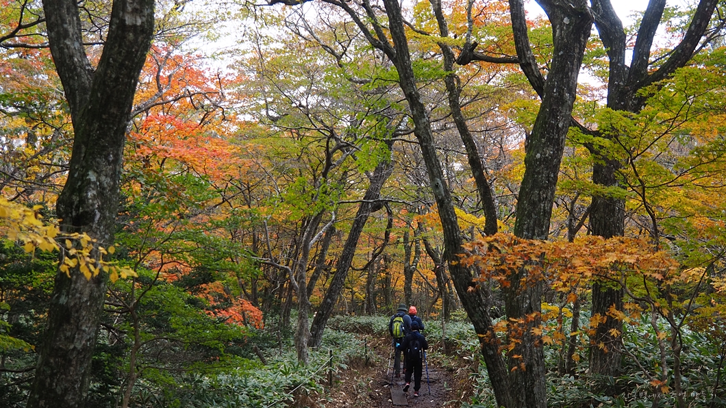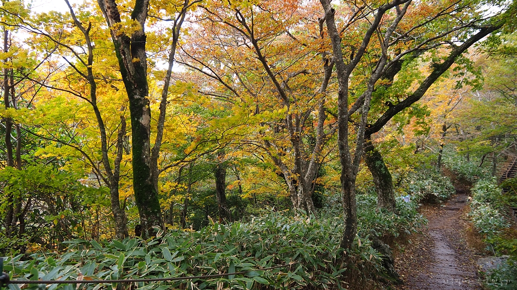 진달래대피소를 지나 지겹게 하산하는 길에서 단풍 구경을 위안 삼아 내려갑니다.