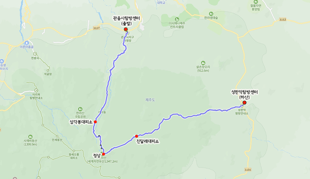 산행 코스 : 관음사 - 삼각봉 - 정상 - 진달래 - 성판악