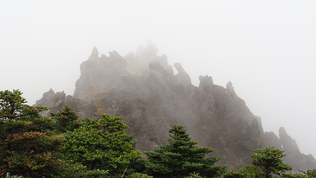올라가는 등산객들의 입에서 하늘이 파랗게 열릴 때는 감탄사 나오다가 순식간에 안갯속으로 들어가 버리면 다시 탄식이..