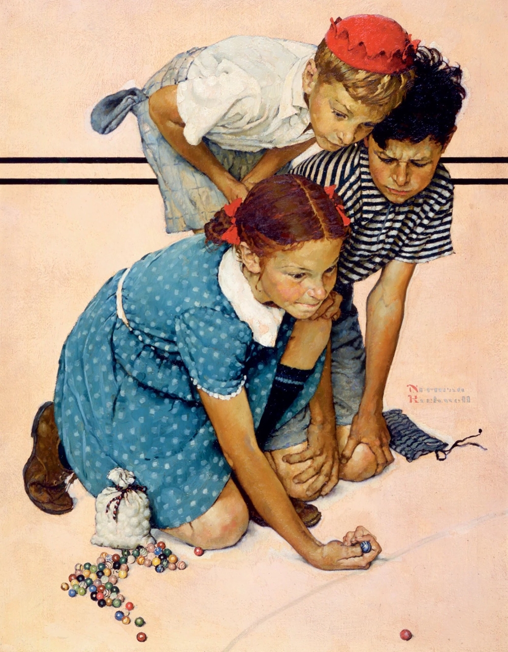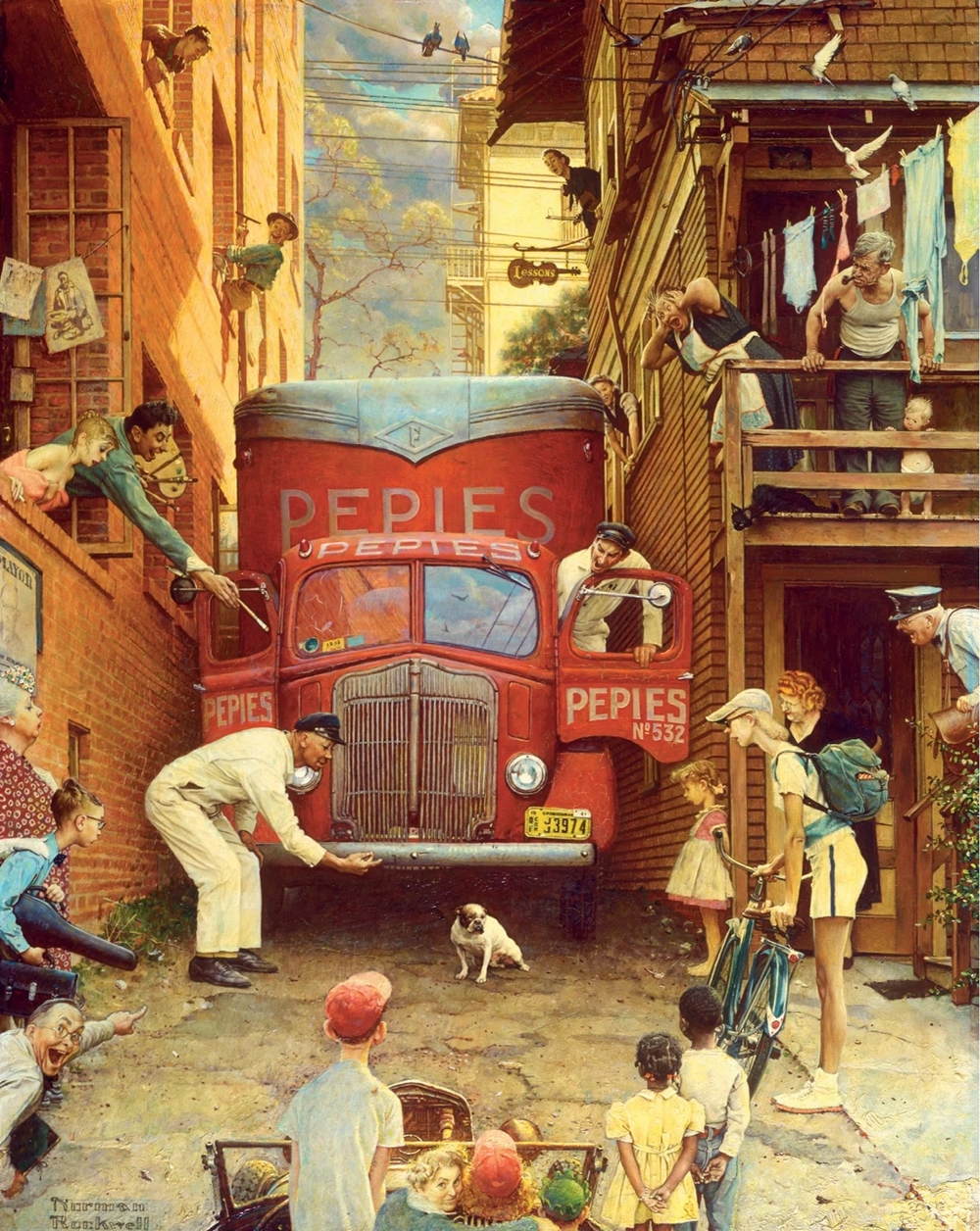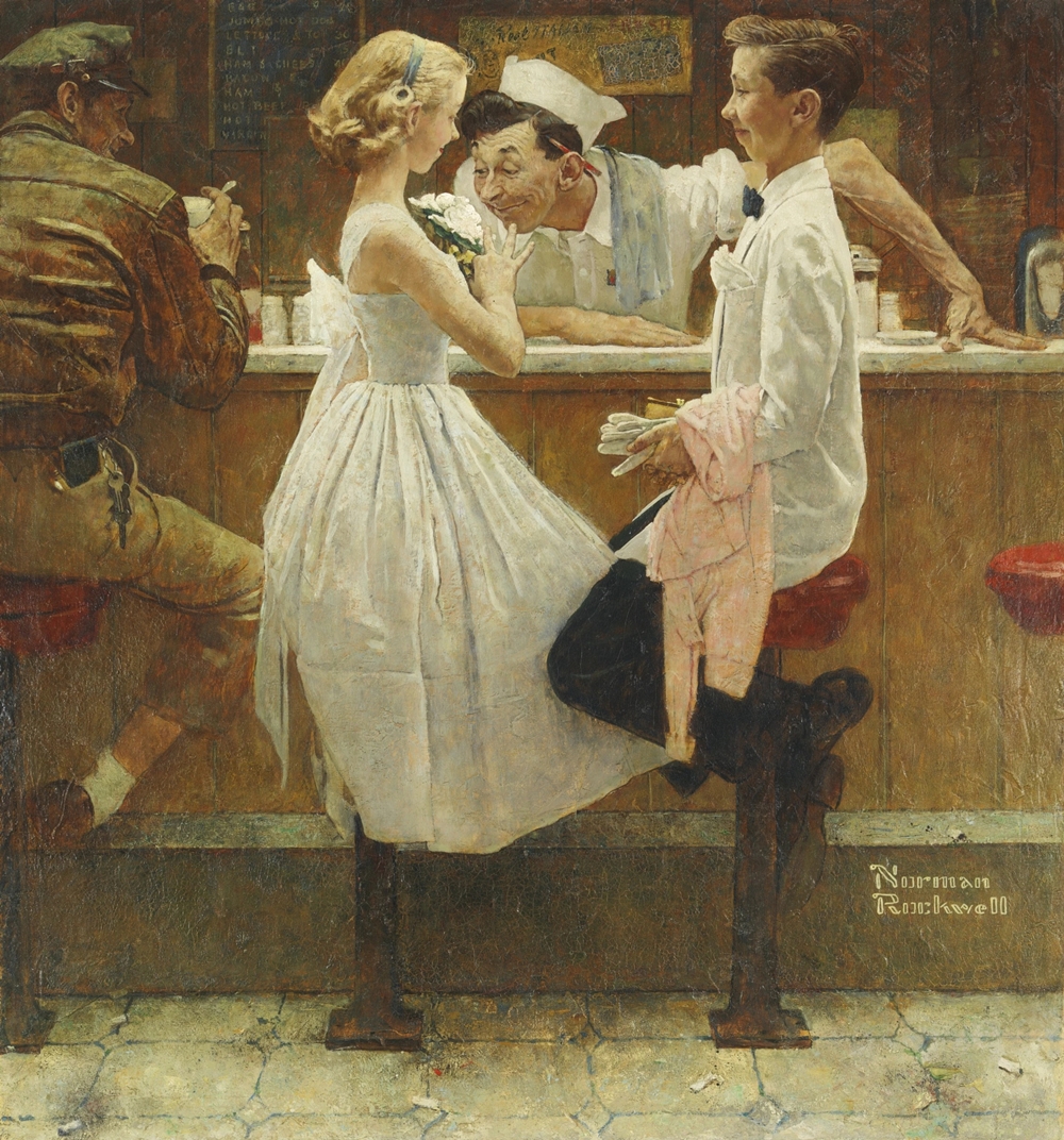 미국이 20세기 전반에 큰 사회적, 경제적 변화를 겪는 동안, Rockwell의 그림과 잡지 삽화는 더 단순하고 순수한 시대를 떠올리게 하여 덜 당황스러운 현실을 묘사하여 인기가 최고였지요.
