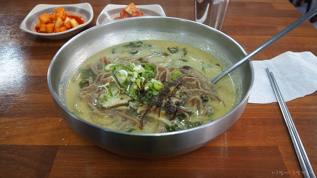 아침 식사는 일출봉 주차장 앞쪽에 있는 식당에 들어가서 보말전복칼국수로 ...