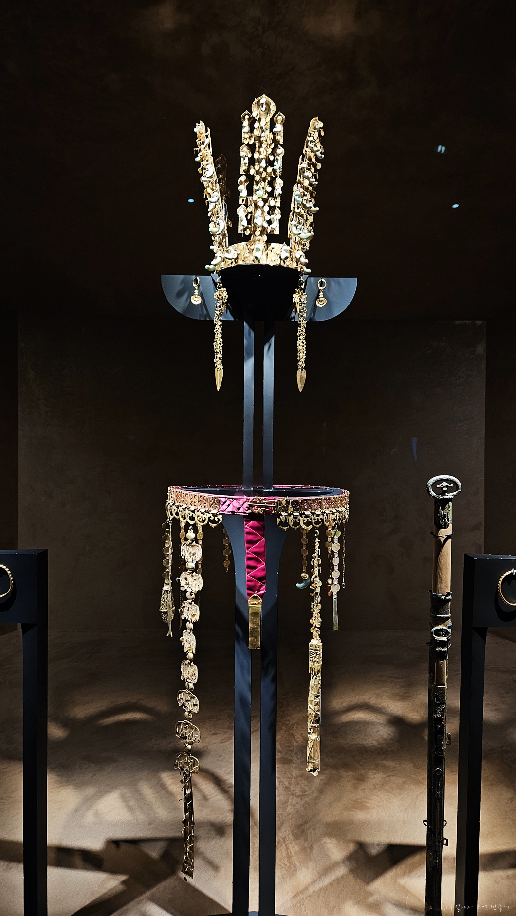 같이 묻힌 황남대총 남분 금제 허리띠보다 훨씬 화려하고, 여자의 신체에 맞춰 착용방법도 다르다.