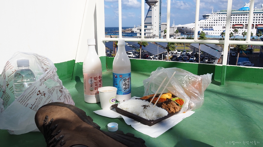 제주항을 떠나는 배 위.