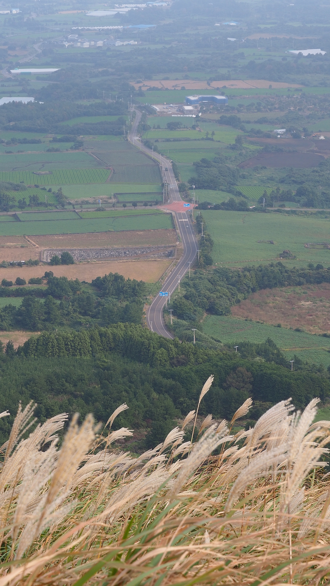 그 뒤로 멀리 성산포가 보이고 일출봉도 희미하게 보이네요.