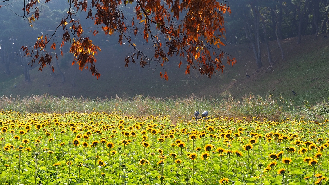 박물관 인근에서 첨성대 앞까지 온통 해바라기 꽃밭입니다.