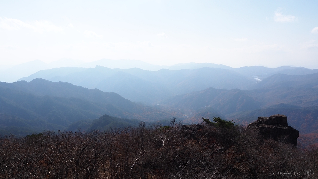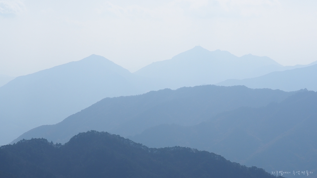 그 뒤 아래로 멀리 해인사가 희미하게 내려다보입니다.