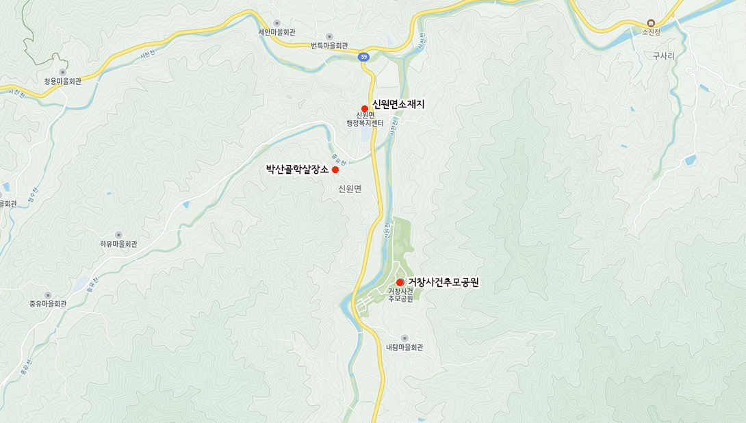 거창 신원면 박산골학살장소와 거창사건추모공원 위치