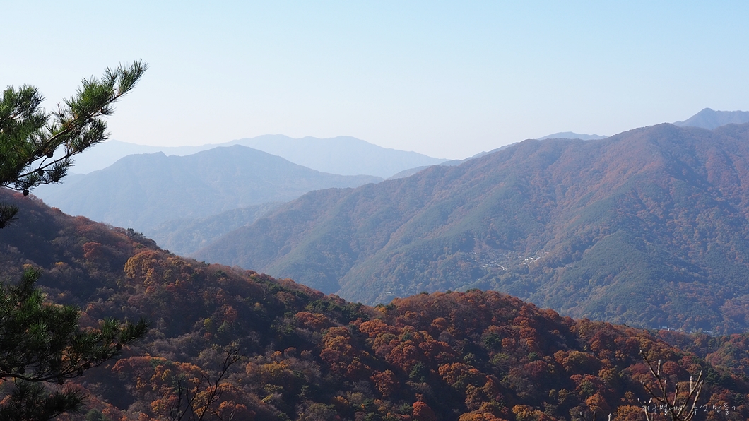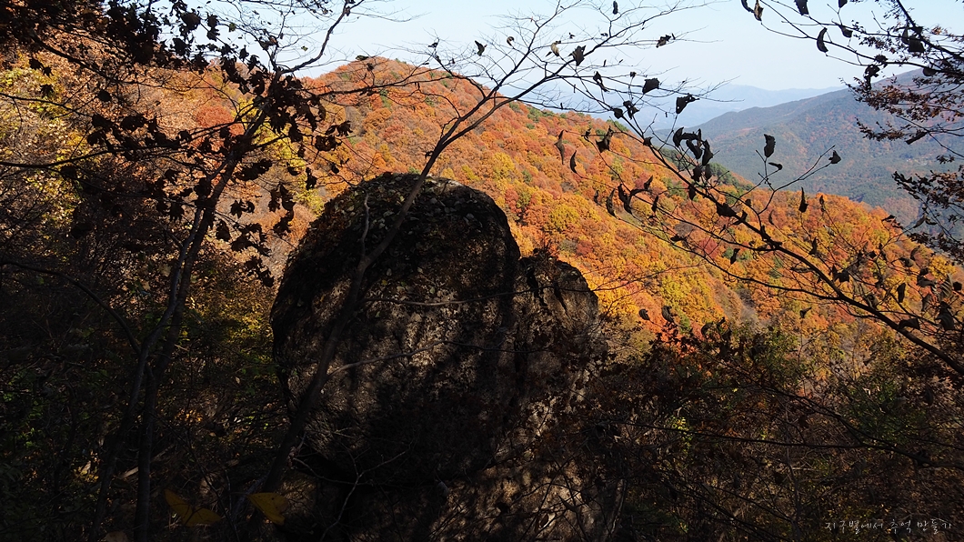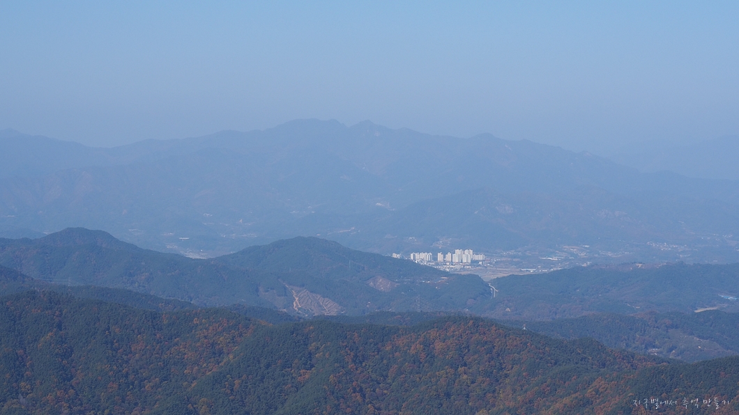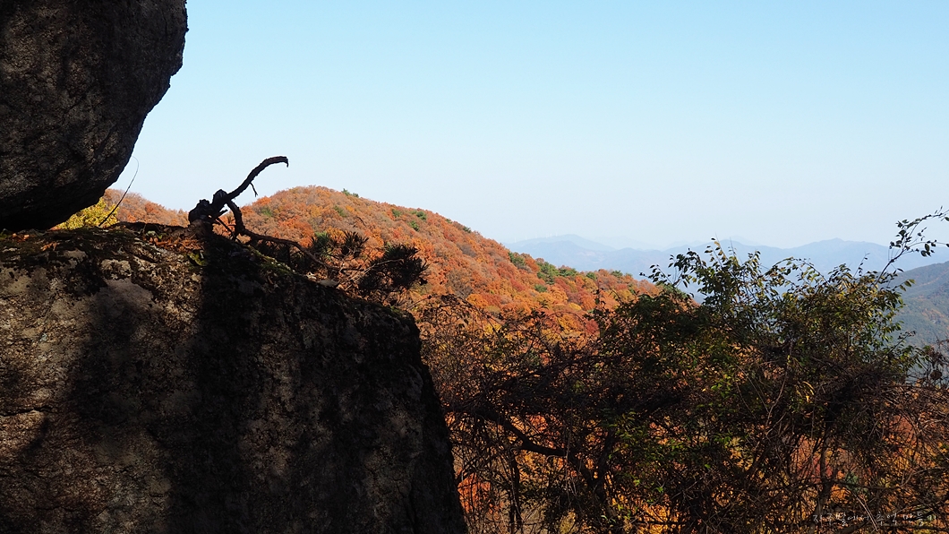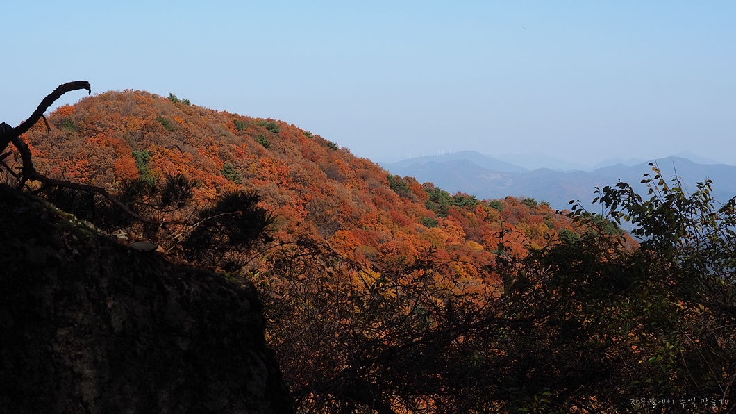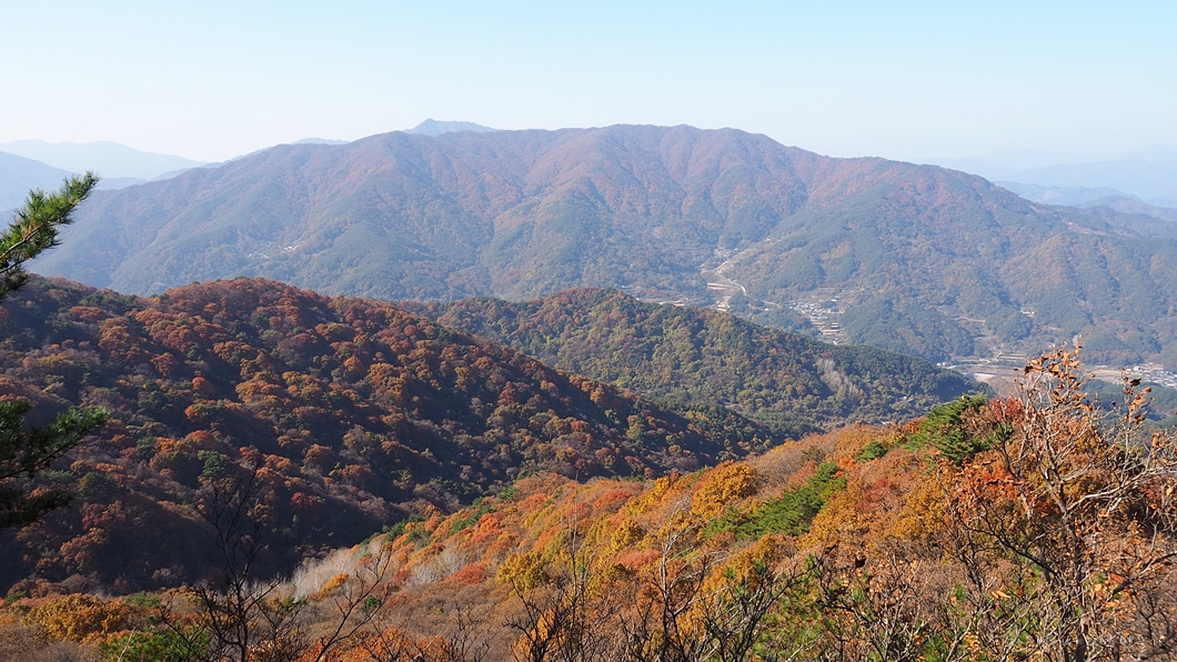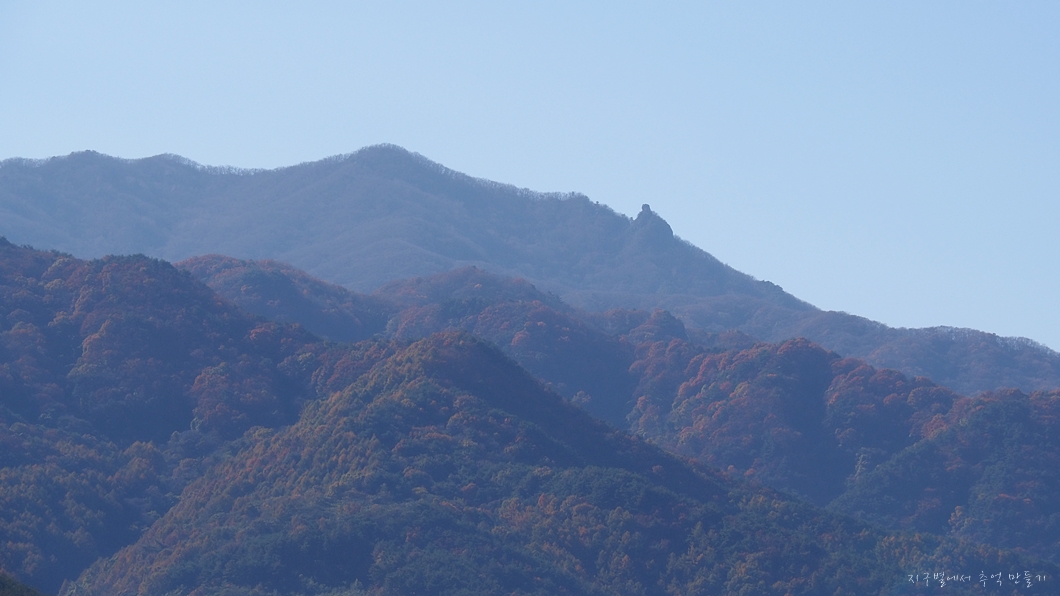 단풍 능선 뒤로 멀리 거창의 감악산도 보이구요.