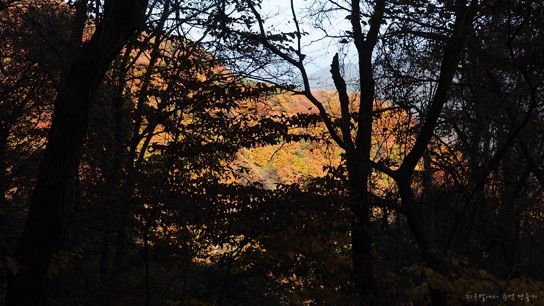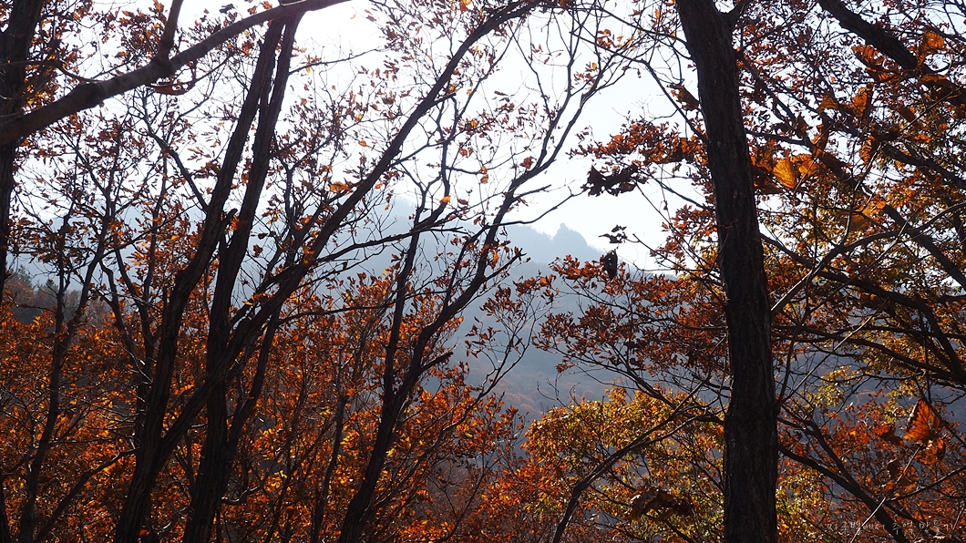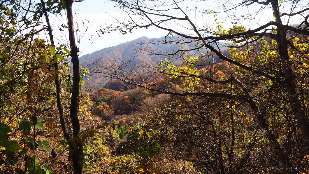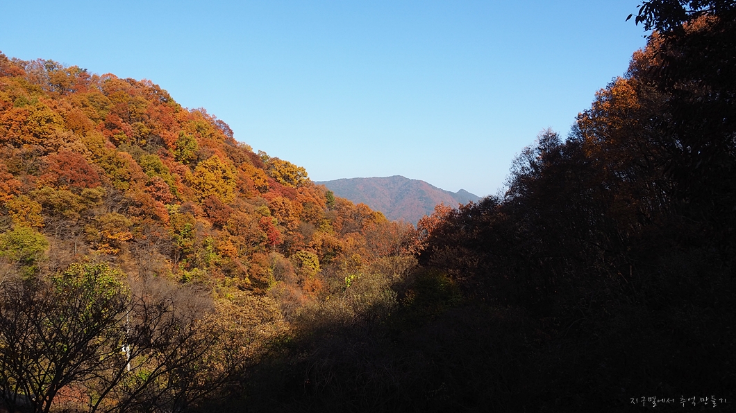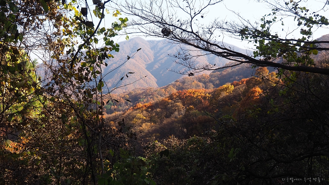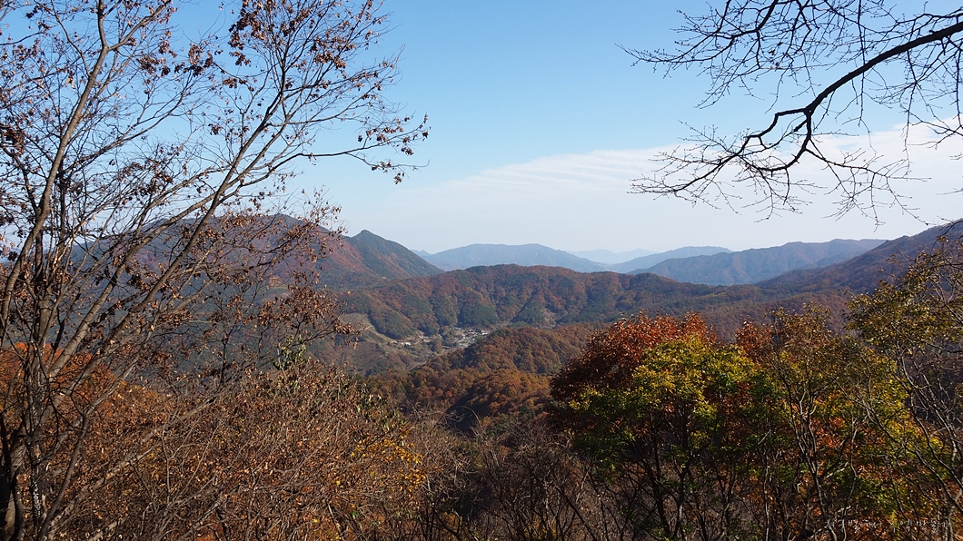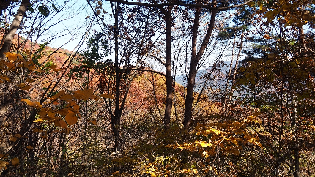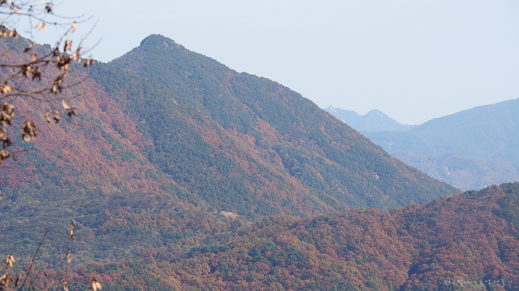 단풍 능선 뒤로 멀리 거창의 감악산도 보이구요.