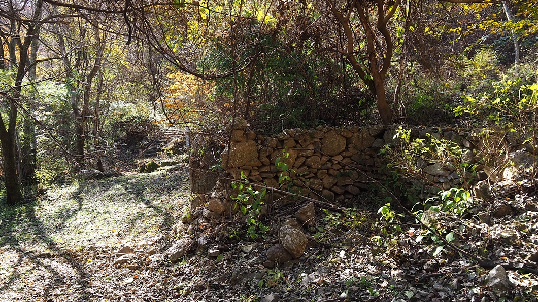 법전암에서 작은 고개를 넘어가면 옛날 화전민이 살았을 것 같은 집터가 나오네요.
