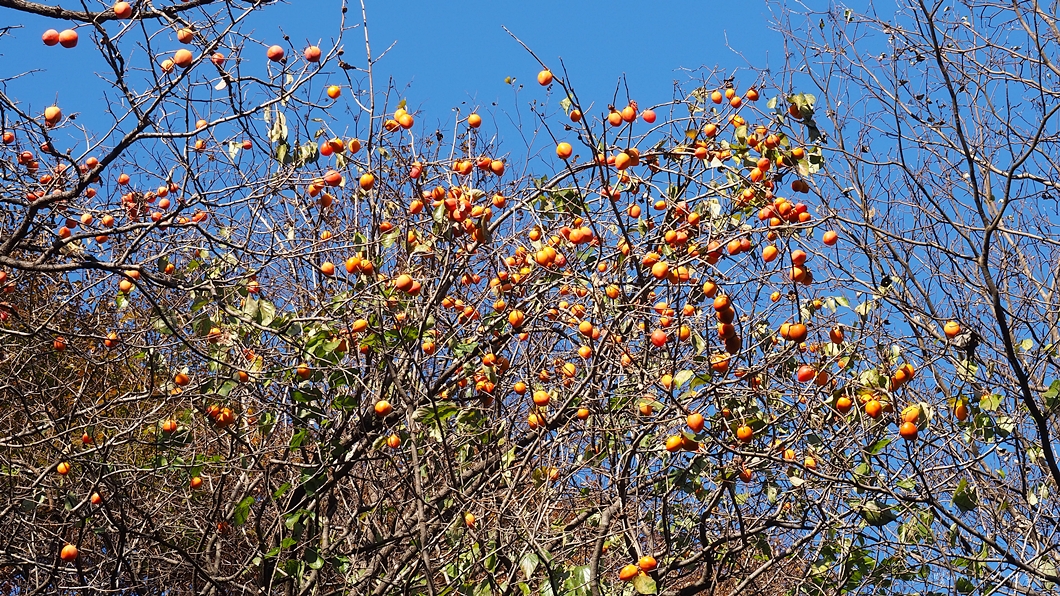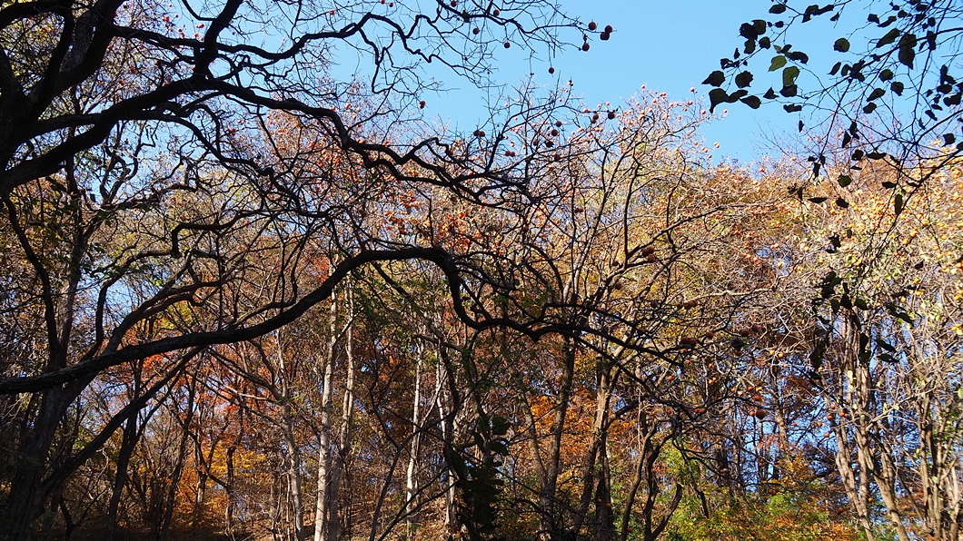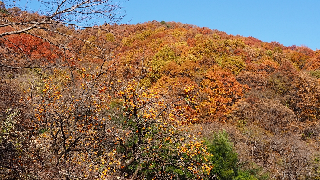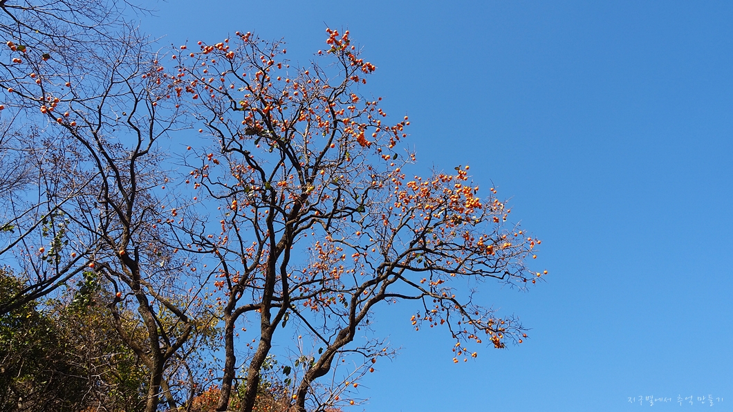 옛날 화전민 집터자리에 있는 감나무에도 발갛게 익은 감들이 가득하네요.