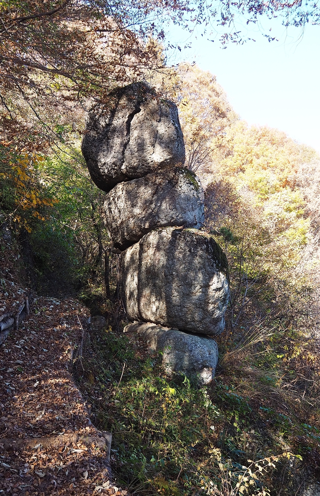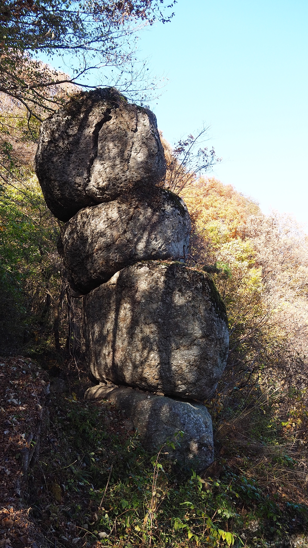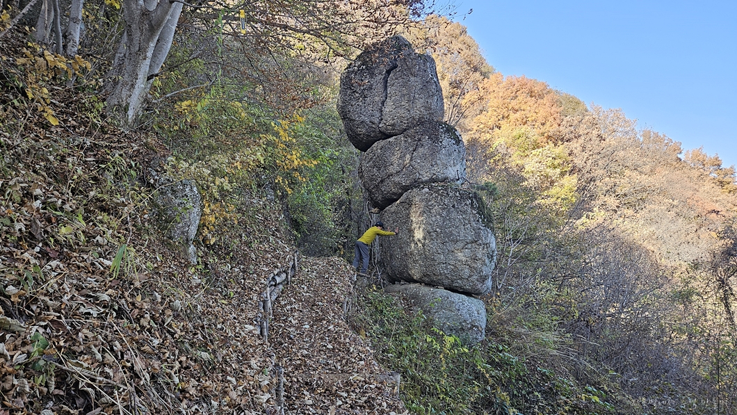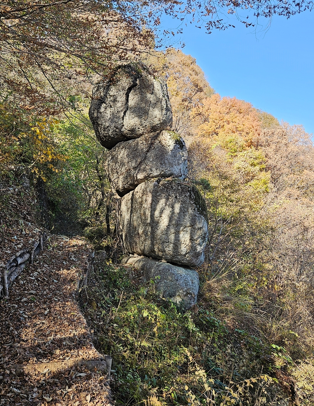 맨 위의 5단 바위로 이렇게 갈라져 있답니다.