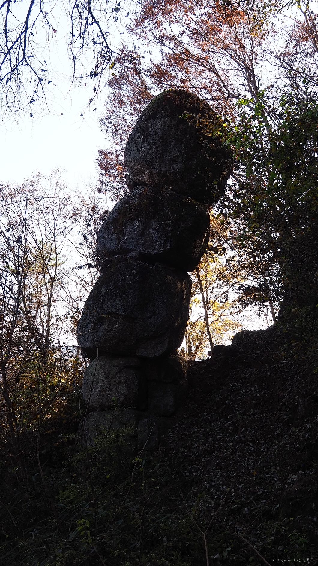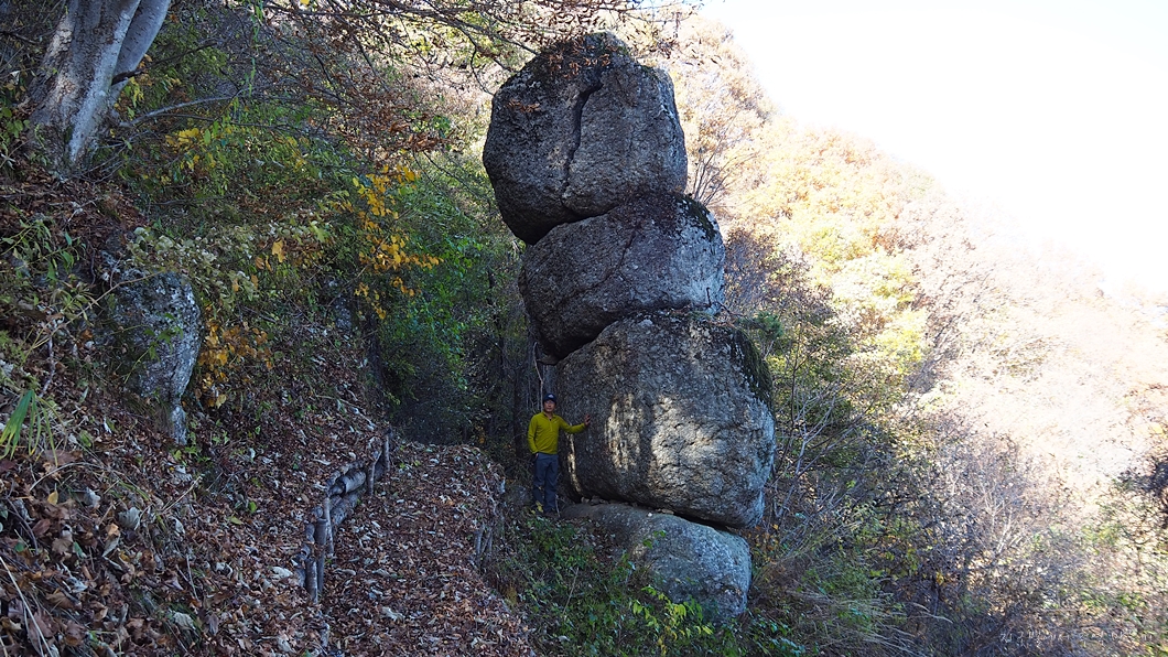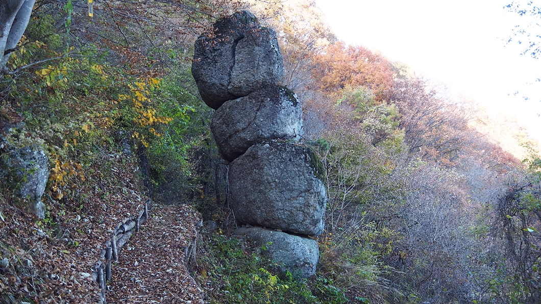 맨 아래 1단 바위는 이쪽에서는 보이지 않는데 반대편에서는 보입니다.