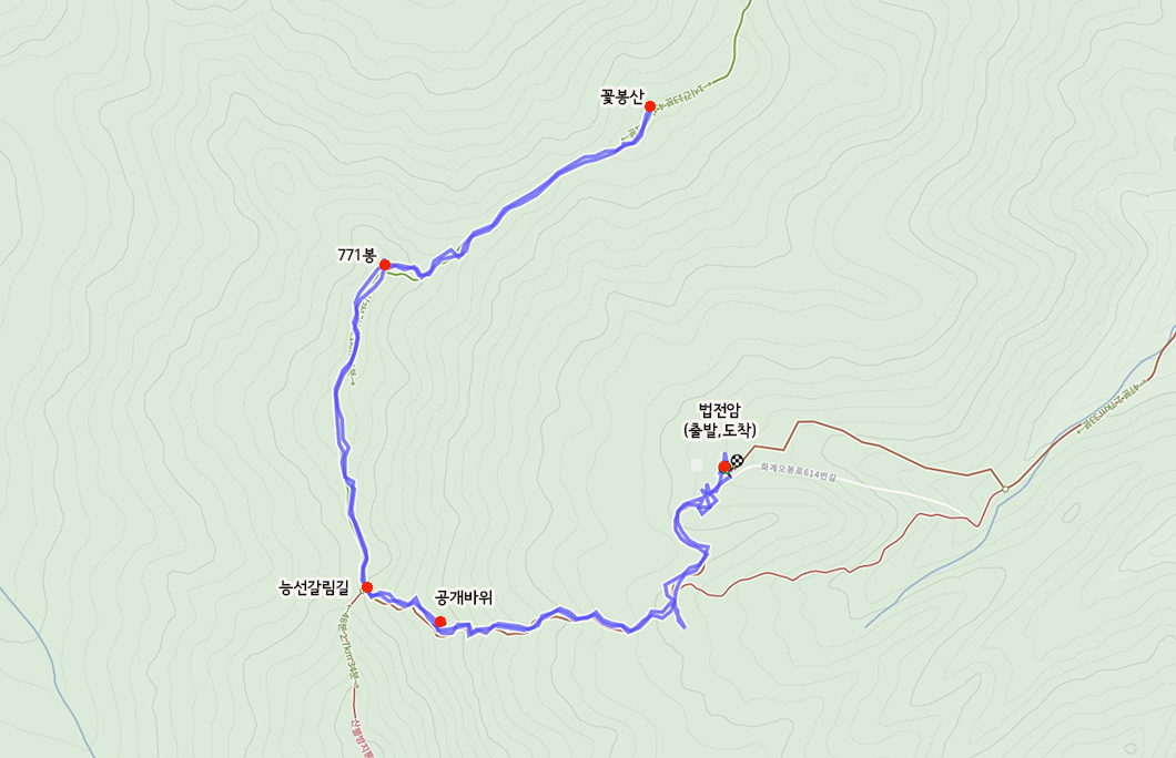 산행 코스 : 법전암 - 공개바위 - 꽃봉산(같던 길로 되돌아 하산)