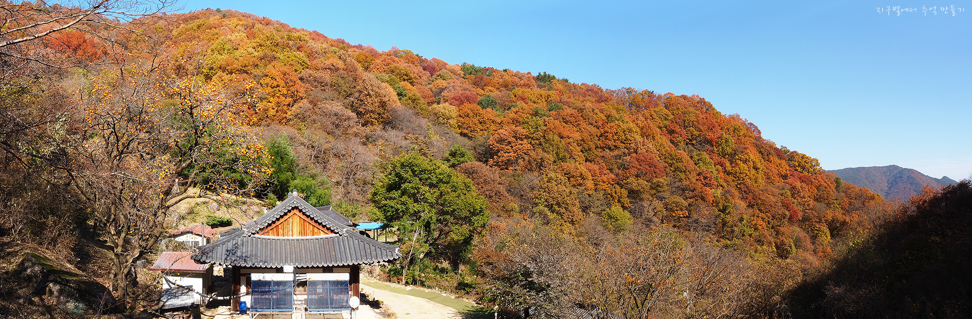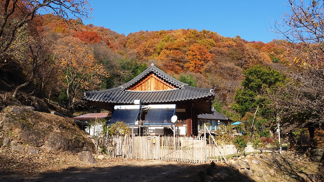 건너편 능선은 불이 난 듯 붉게 물들어 있는데 암자는 적막하네요.