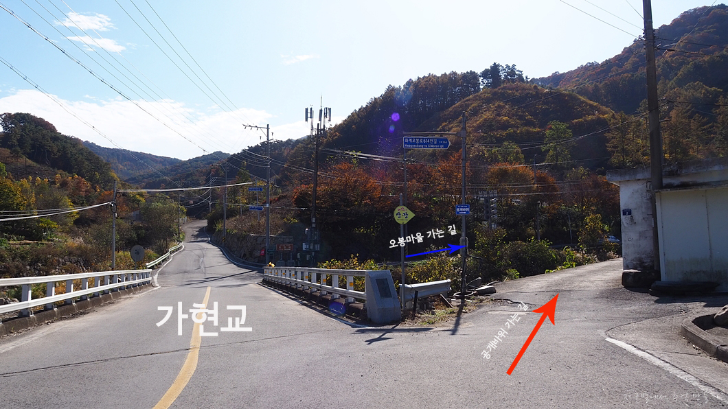 다리 건너서 우측으로 오르면 깊숙한 계곡 안에 있는 오봉마을과 만나게 되구요.