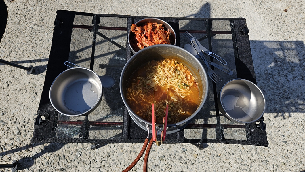 이번 차박 여행에서 히든카드는 역시 김치.