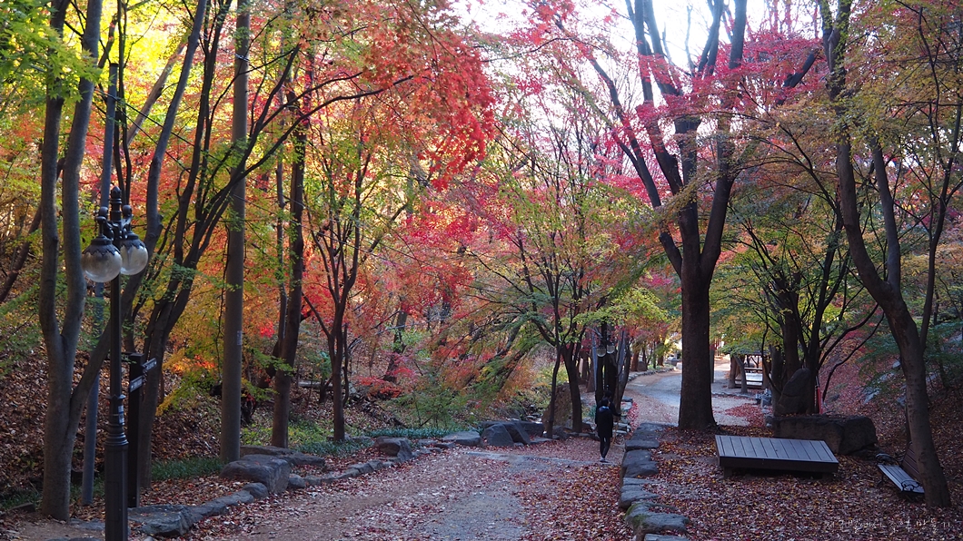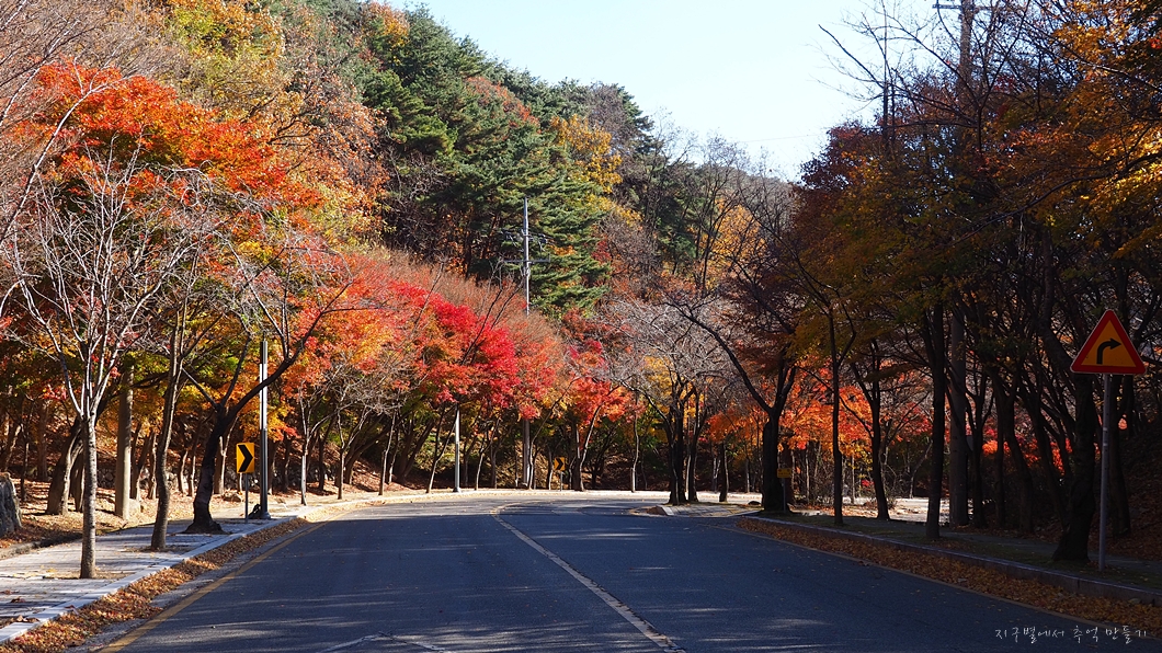 혼자보기 아까운 단풍길을 천천히 걸어갑니다.