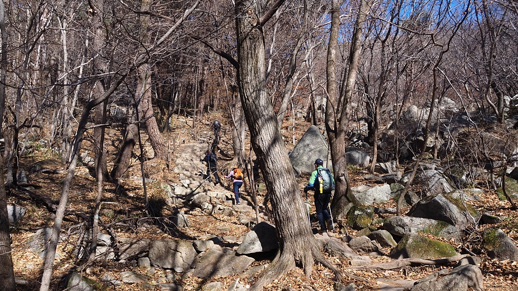 팔공산 능선길은 두 종류로 나눨 수 있는데 능선 가장 솟은 부분의 암릉 구간이 군데군데 있어 이걸 타고 갈 수도 있고 조금 쉽게 우회하는 길을 따라갈 수도 있답니다.