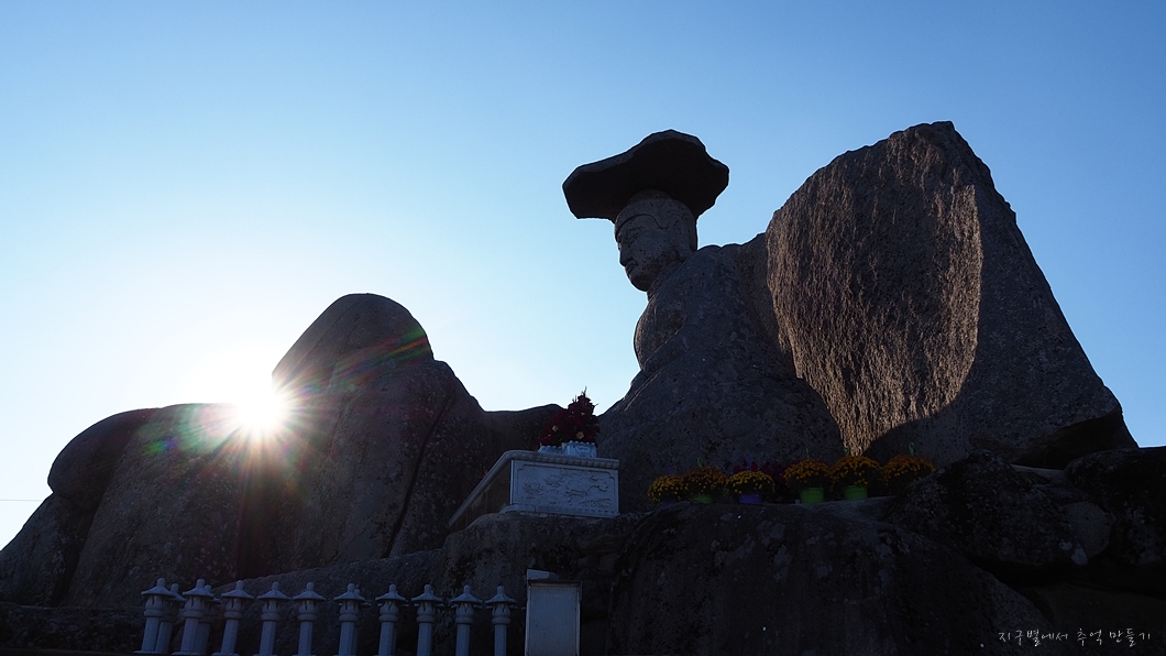동봉 아래 능선에 올라서 약사불도 잠시 둘러보고..