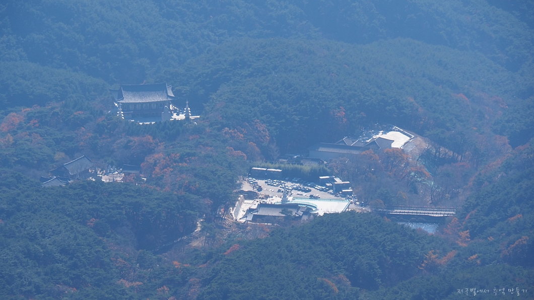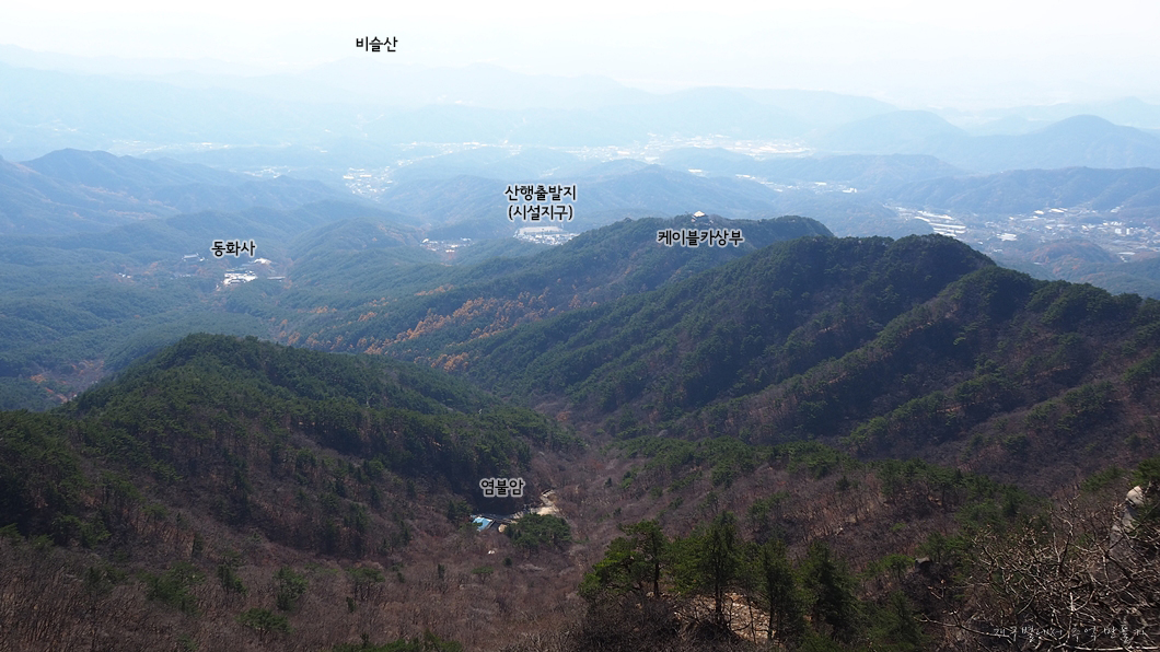 바로 아래 염불암이 보이고 더 아래로 동화사도 보이네요.