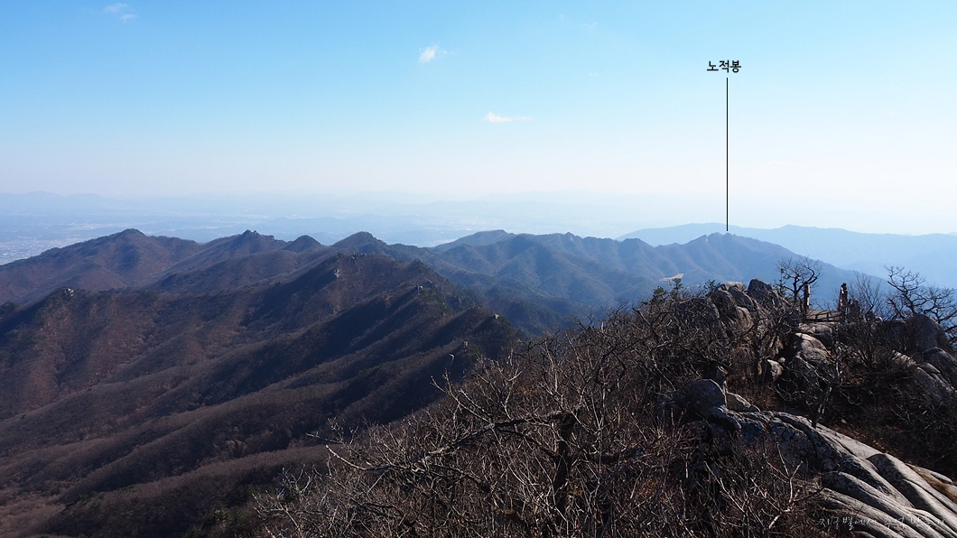 멀리 보이는 노적봉 뒤편이 갓바위입니다.