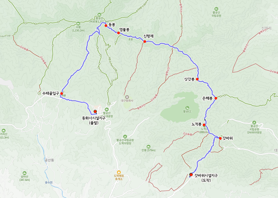 산행 코스 : 동화사 시설지구 - 수태골 - 동봉 - 갓바위 - 갓바위 시설지구