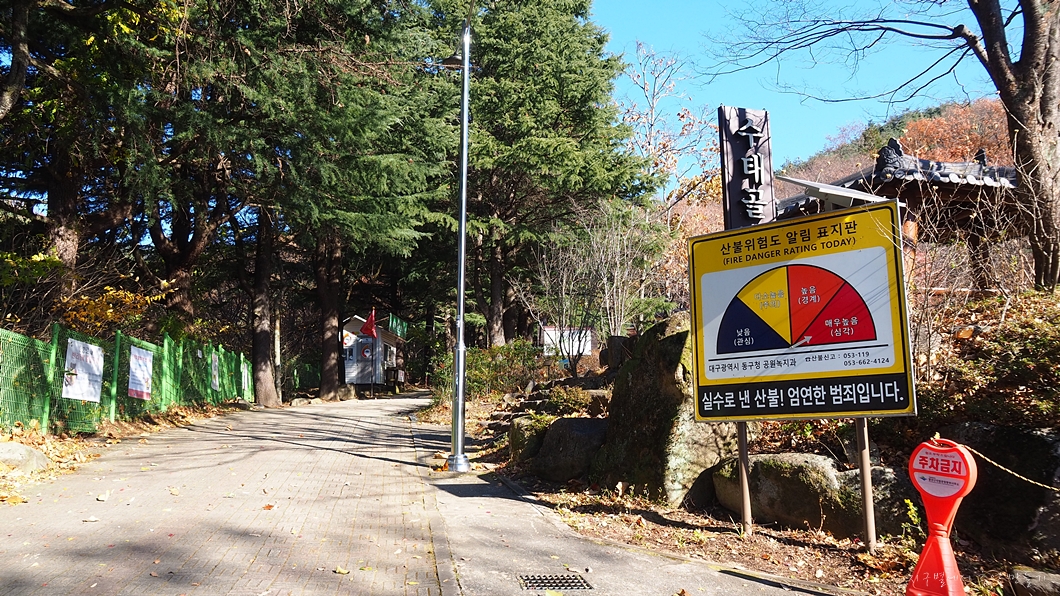 동화사 시설지구에서 수태골 입구까지는 대략 1km 정도.