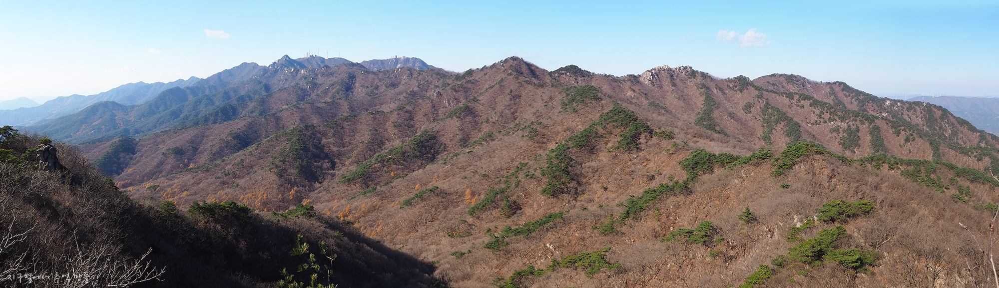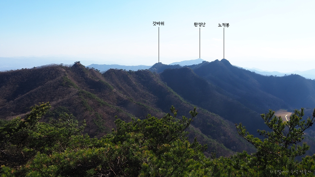 명마능선과 그 뒤로 환성산.