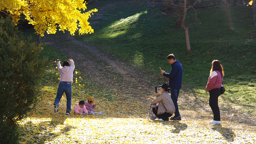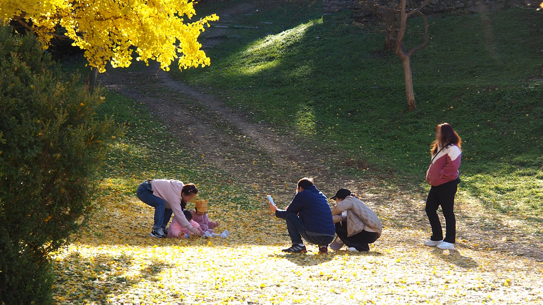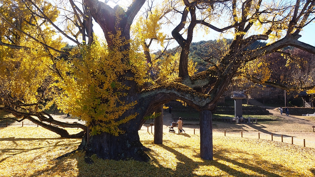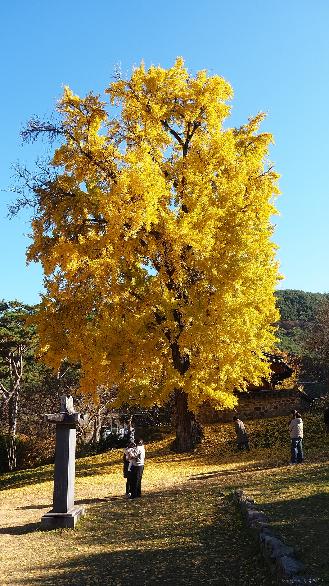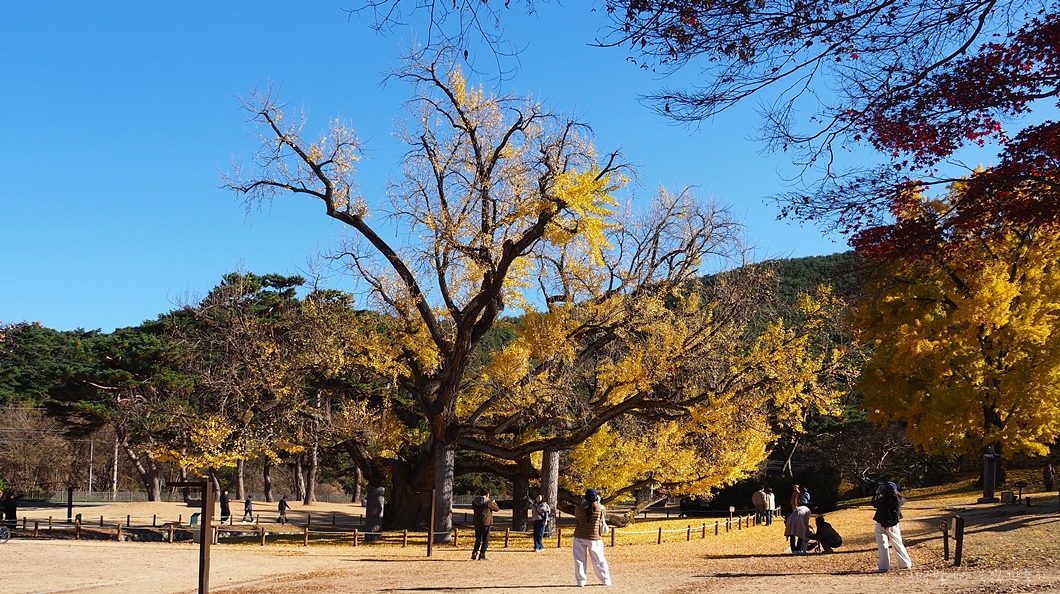 옆에는 아직 쌩쌩한 은행나무가 한그루 더 있는데 사람들은 이곳에서 기념촬영을 하구요.