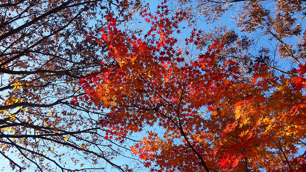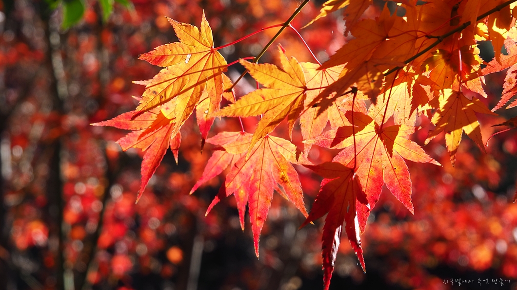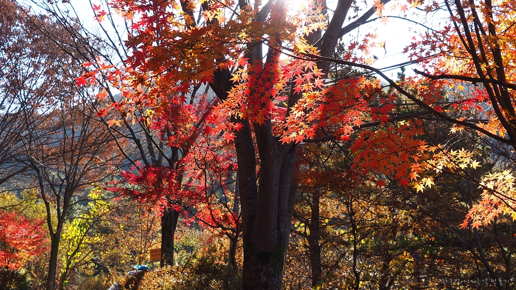 햇살에 반짝이는 붉은 단풍이 너무나 곱습니다.